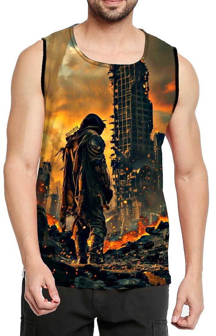 BLACKSMITH Inferno Ops Printed Sleeeveless Sando Tank top Gym & Street wear for Men Dark Yellow