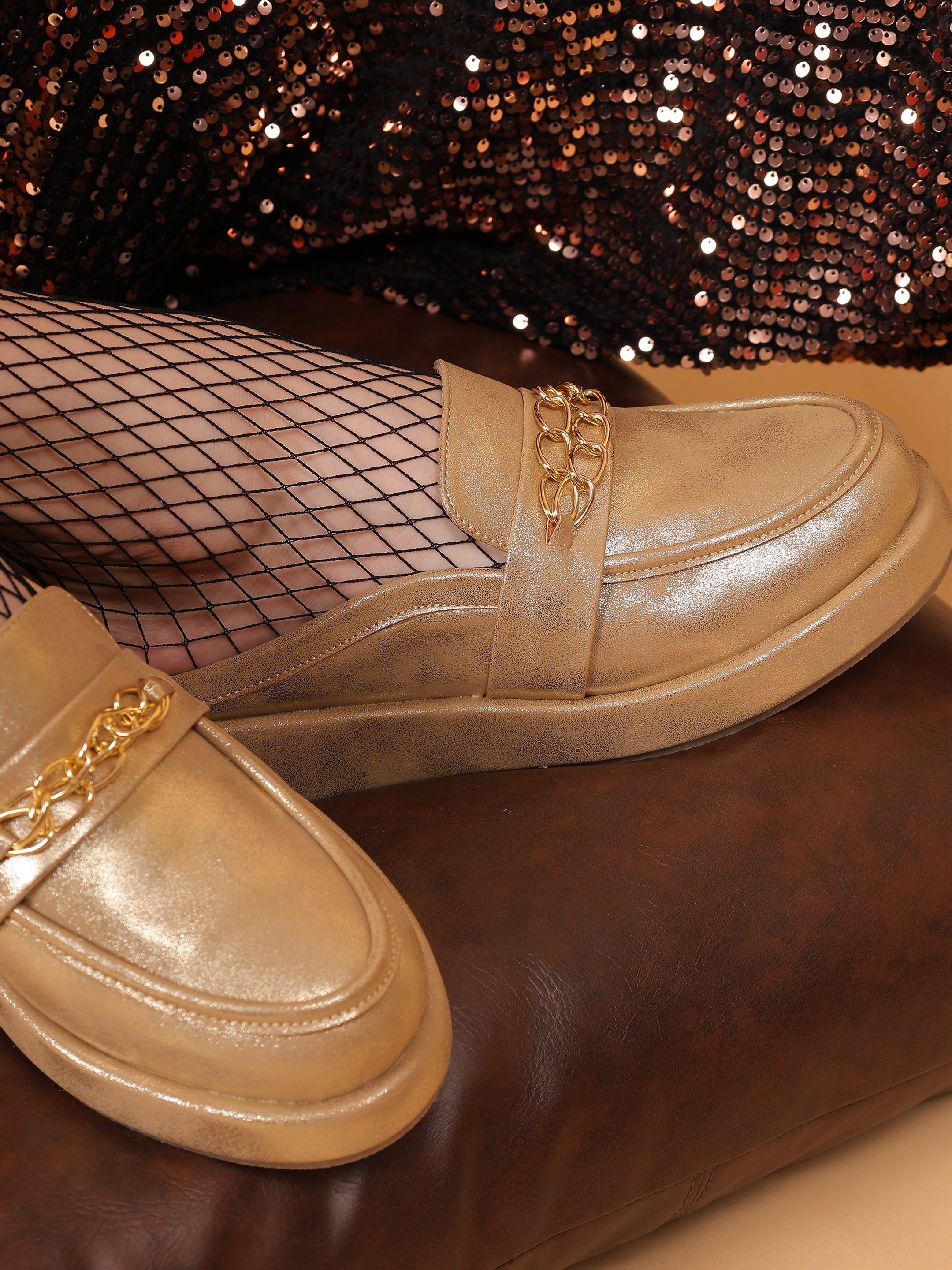 Patakha Guddi Golden Handcrafted Loafers
