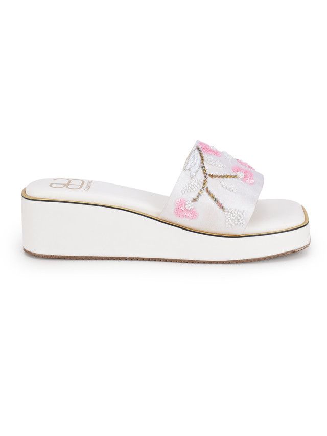 Elevate your style with Glam Story's Women White Embroidered Ethnic Wedge, . These beautiful flats are the epitome of elegance and comfort, meticulously crafted to make a statement with every step you take.