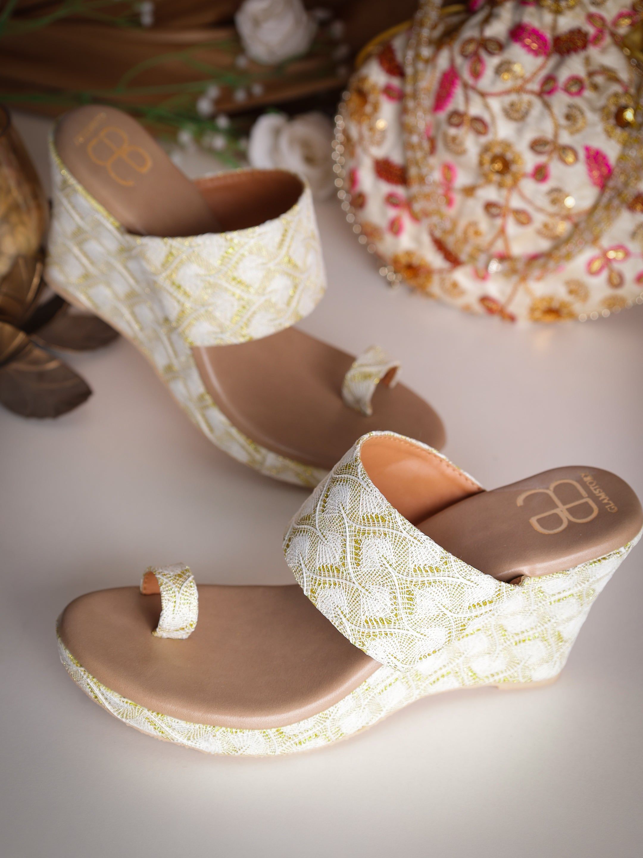 Indulge in luxury and elegance with our Embroidered White Elegance Wedge. Make a statement wherever you go and let your style shine.