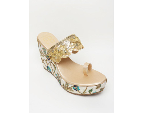 Step into elegance with Glam Story's Embroidered Ethnic Wedge Heels. These heels feature a stylish single toe design, blending tradition with contemporary flair. Crafted by Glam Story, renowned for their sophisticated vegan soles, they ensure comfort and sophistication in every step.